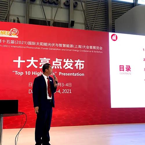 2021年6月5日,SNEC展會(huì)“十大亮點(diǎn)”評選活動(dòng)在上海新國際博覽中心成功舉辦,也是“SNEC EXPO”的重要內(nèi)容之一?;顒?dòng)旨在使展會(huì)最出色的技術(shù)與產(chǎn)品,能夠脫穎而出,促進(jìn)行業(yè)面向科技前沿,占領(lǐng)科技制高點(diǎn),著力攻關(guān)核心技術(shù),把握未來發(fā)展主動(dòng)權(quán)。隆瑪科技受邀出席發(fā)表演講,并榮膺“十大亮點(diǎn)”兆瓦級翡翠獎(jiǎng)。