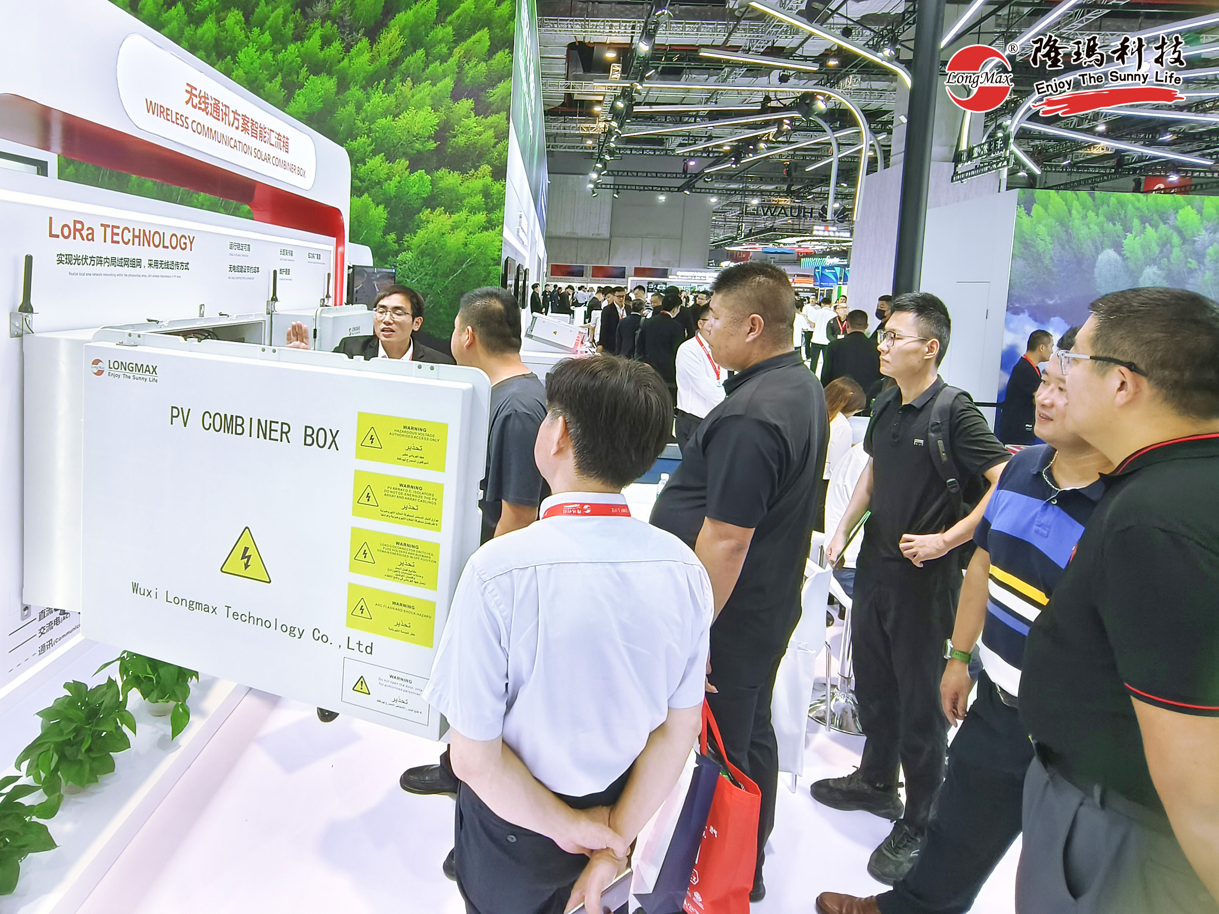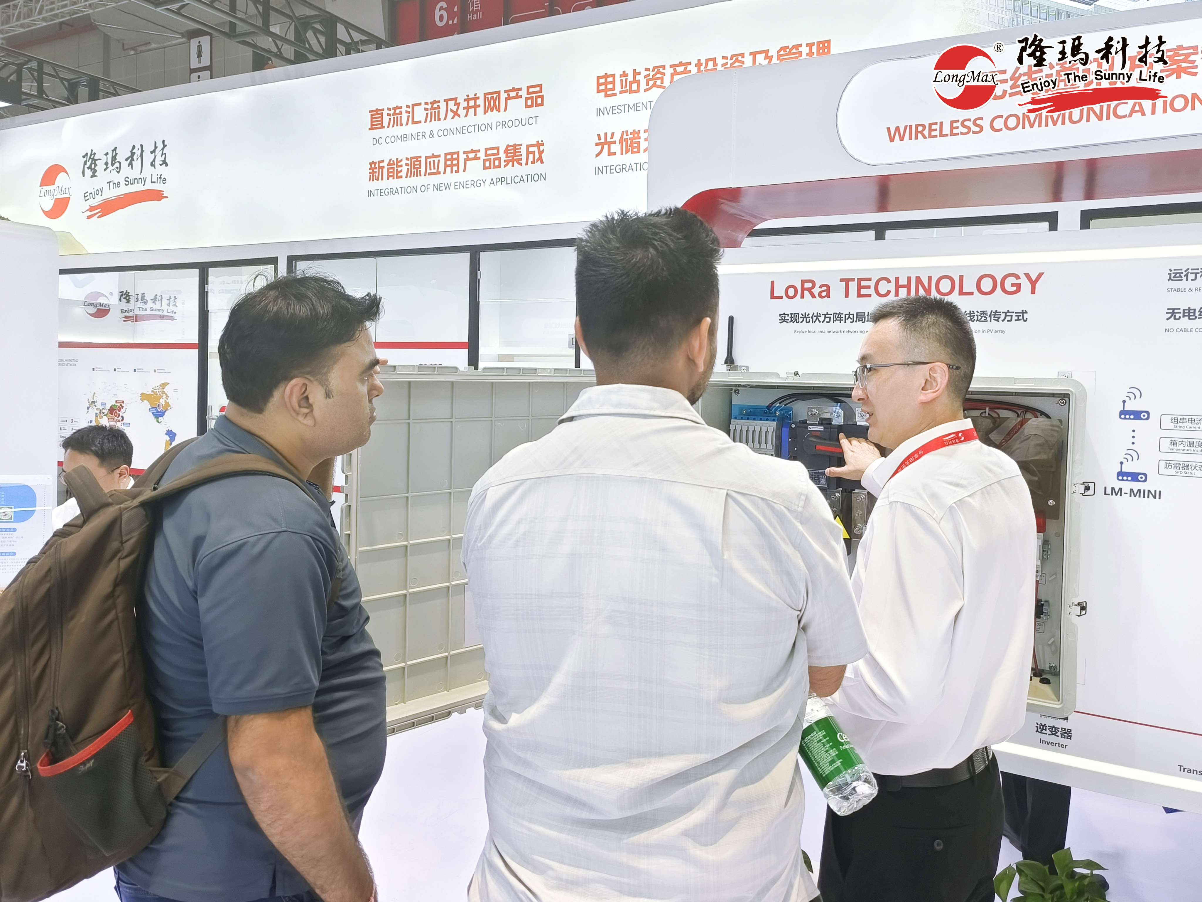智能化是光伏產(chǎn)業(yè)未來發(fā)展的大方向,也是本次展會的“重頭戲”之一,各大品牌廠商也紛紛圍繞智能化做足“產(chǎn)品文章”,但群星閃耀也遮不住隆瑪產(chǎn)品的獨特光芒。針對規(guī)模大、分布廣的地面電站場景,隆瑪科技在展會上帶來了搭載成熟物聯(lián)網(wǎng)技術(shù)——LoRa無線通訊技術(shù)的智能匯流箱方案,引來現(xiàn)場眾多海外客商的炙熱目光。