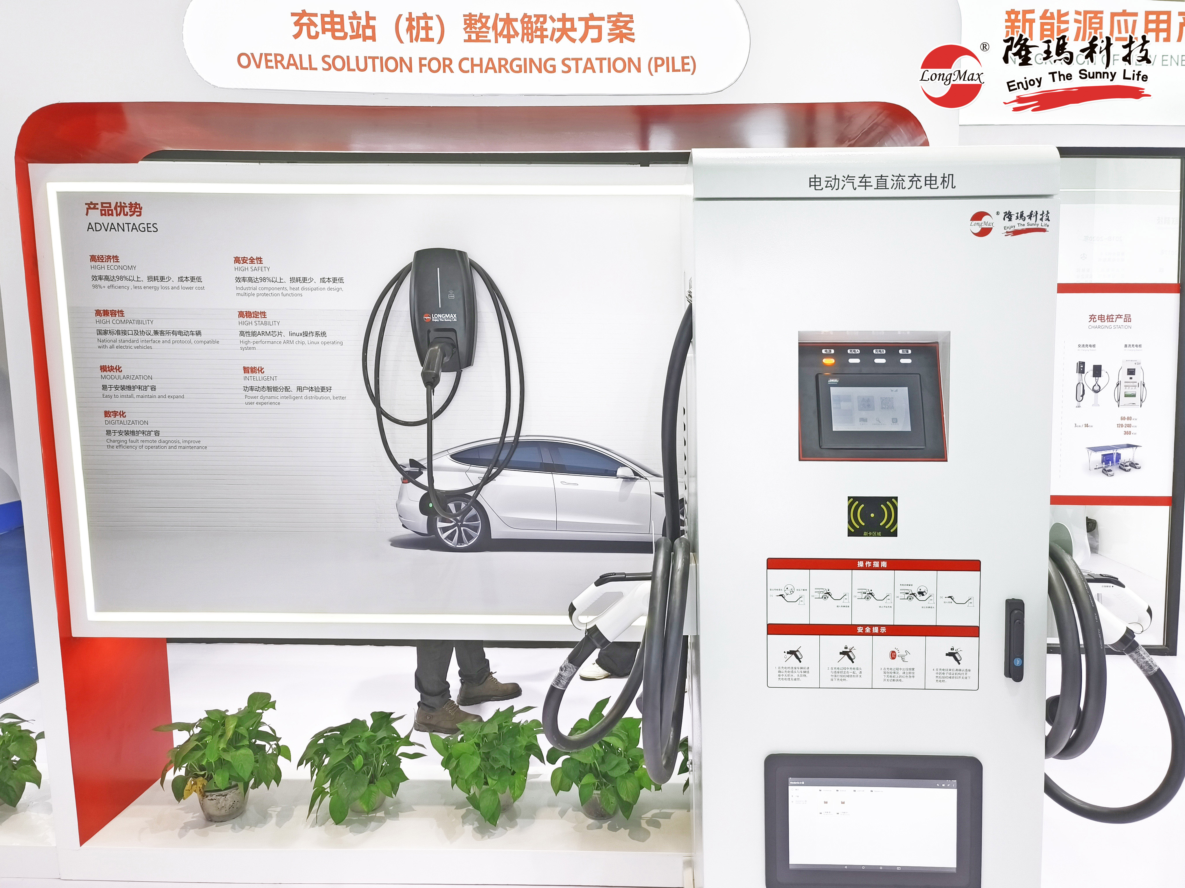 作為光儲充一體化解決方案的重要組成部分,充電樁一直是隆瑪科技重點發(fā)力的對象之一。在展會上,隆瑪科技交流與直流充電樁產(chǎn)品以“全能”姿態(tài)驚艷亮相,以充電效率高達98%以上的高經(jīng)濟性、多重保護兼?zhèn)涞母甙踩砸约芭c所有電動車輛匹配的高兼容性收割參觀者們的關(guān)注目光。