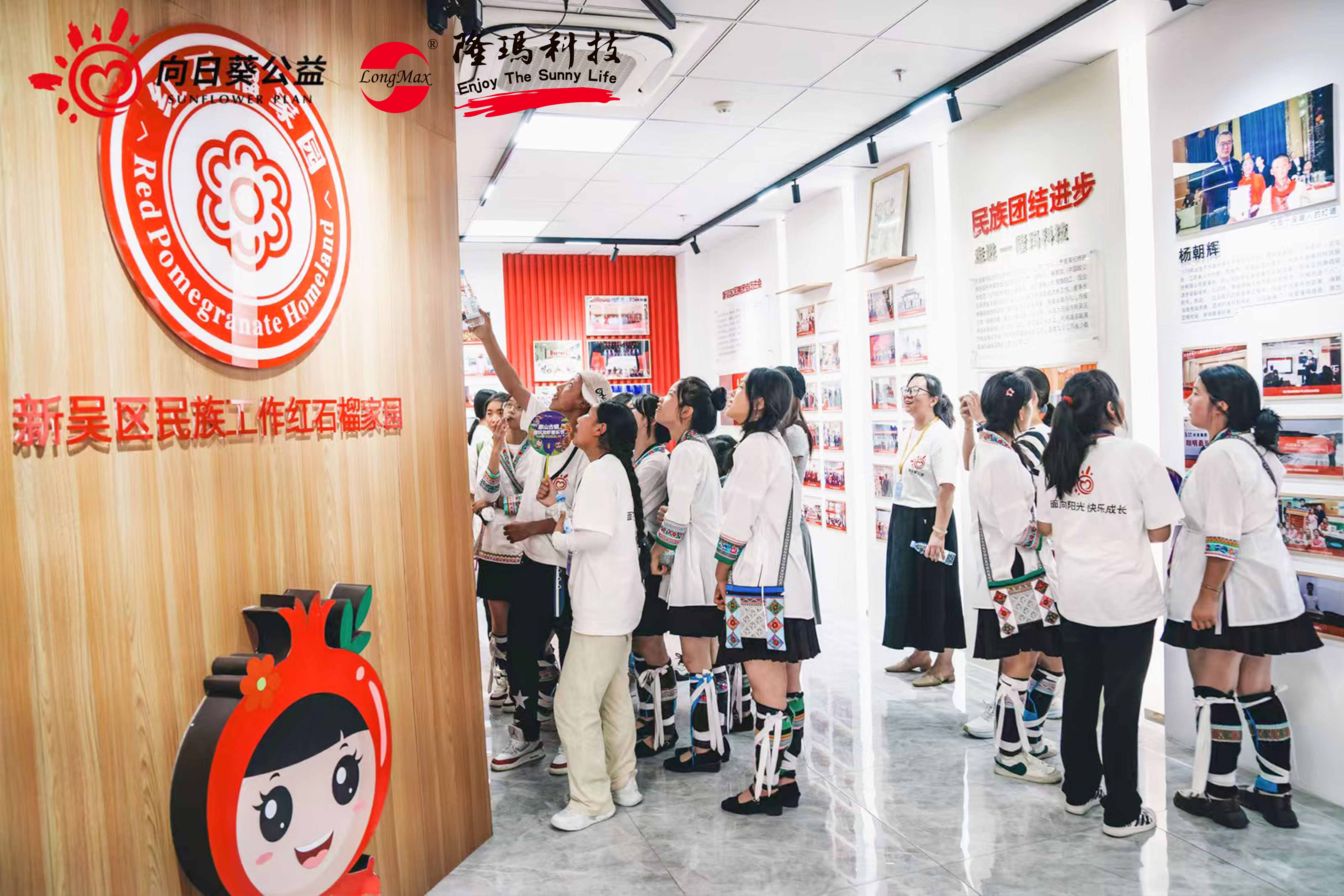 接著,少年們參觀了隆瑪科技紅石榴家園,紅石榴家園是各民族團(tuán)結(jié)的主陣地,展示著各項(xiàng)民族團(tuán)結(jié)活動(dòng)工作成果,并精心設(shè)計(jì)了各民族團(tuán)結(jié)的互動(dòng)小裝置,收藏著隆瑪科技“小石頭大公益”項(xiàng)目的公益成果。少年們?cè)诠ぷ魅藛T的指引下,專心聽講,并紛紛尋找起屬于自己民族的介紹小魔方。