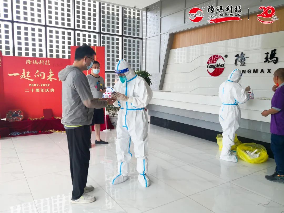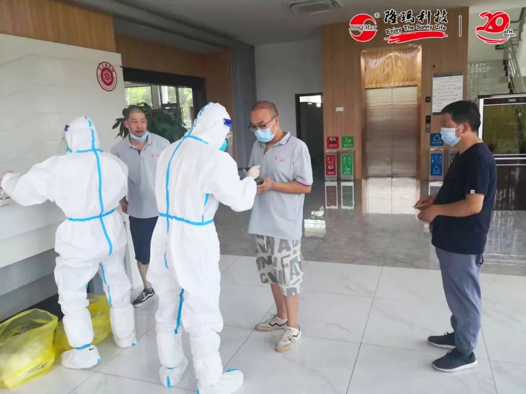 7月初,無錫市突發(fā)多例新冠肺炎陽性感染病例,疫情防控形勢驟然嚴峻。隆瑪科技積極響應市委市政府相關防疫政策,嚴格落實疫情防控要求,夯實企業(yè)主體責任,把“疫情要防住、經濟要穩(wěn)住、發(fā)展要安全”的要求落到實處,公司管理團隊果斷決策,科學籌劃,快速部署。集團董事長楊朝輝、總經理楊宇輝親自帶著30余名一線員工駐廠保產保供,其余員工實行居家辦公,確?!胺酪邽橄?、生產不停、鏈條不斷、訂單不減、管理有序”。