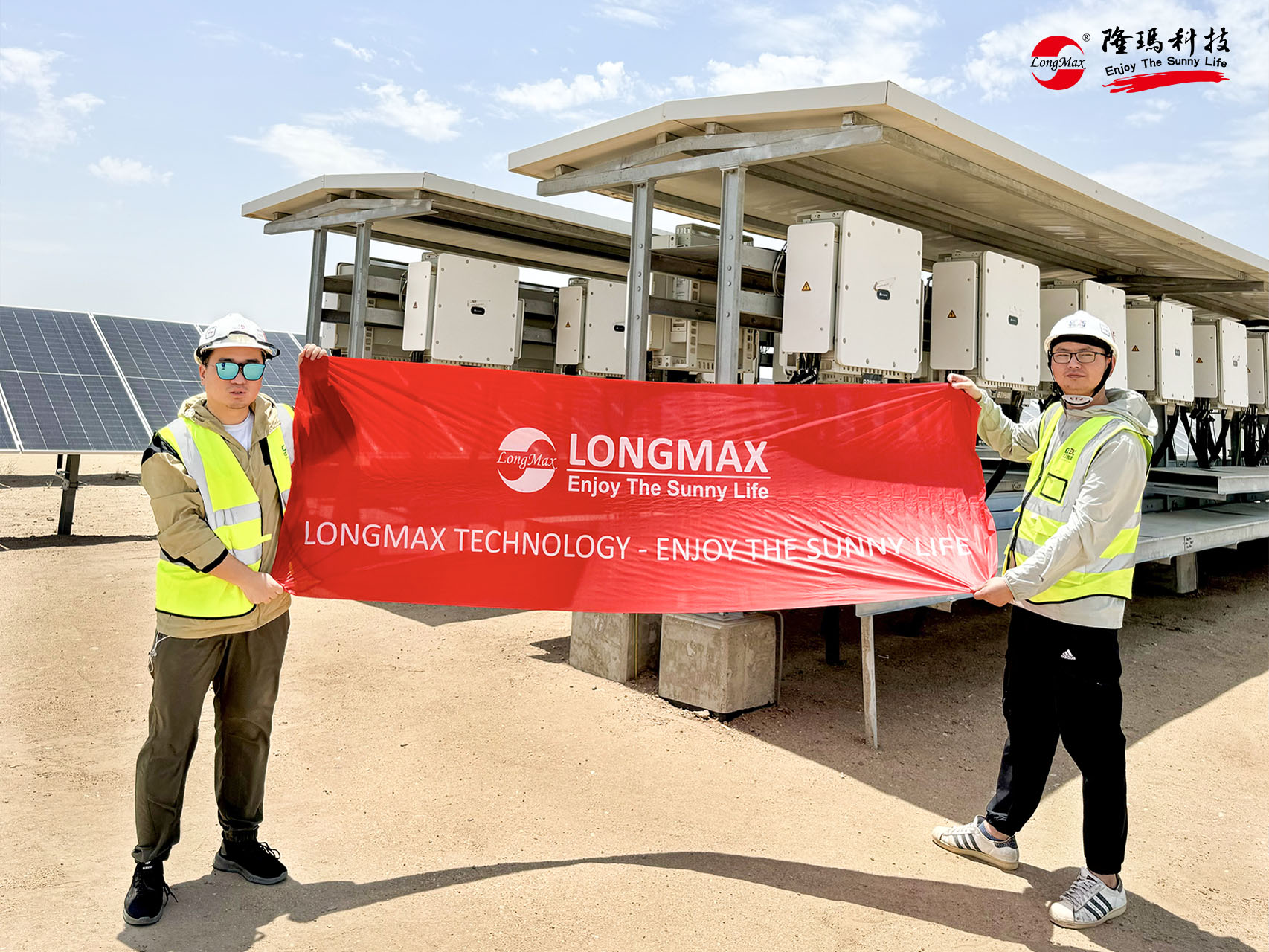 頂著高溫?zé)崂耍?/span>隆瑪團(tuán)隊(duì)來(lái)到第一站——沙特阿爾舒巴赫2.6GW光伏項(xiàng)目。作為該項(xiàng)目的重要合作伙伴,隆瑪科技為項(xiàng)目提供了總計(jì)600MW的光伏匯流箱,為這座當(dāng)前世界最大光伏電站項(xiàng)目的穩(wěn)定運(yùn)行奠定牢固基石。