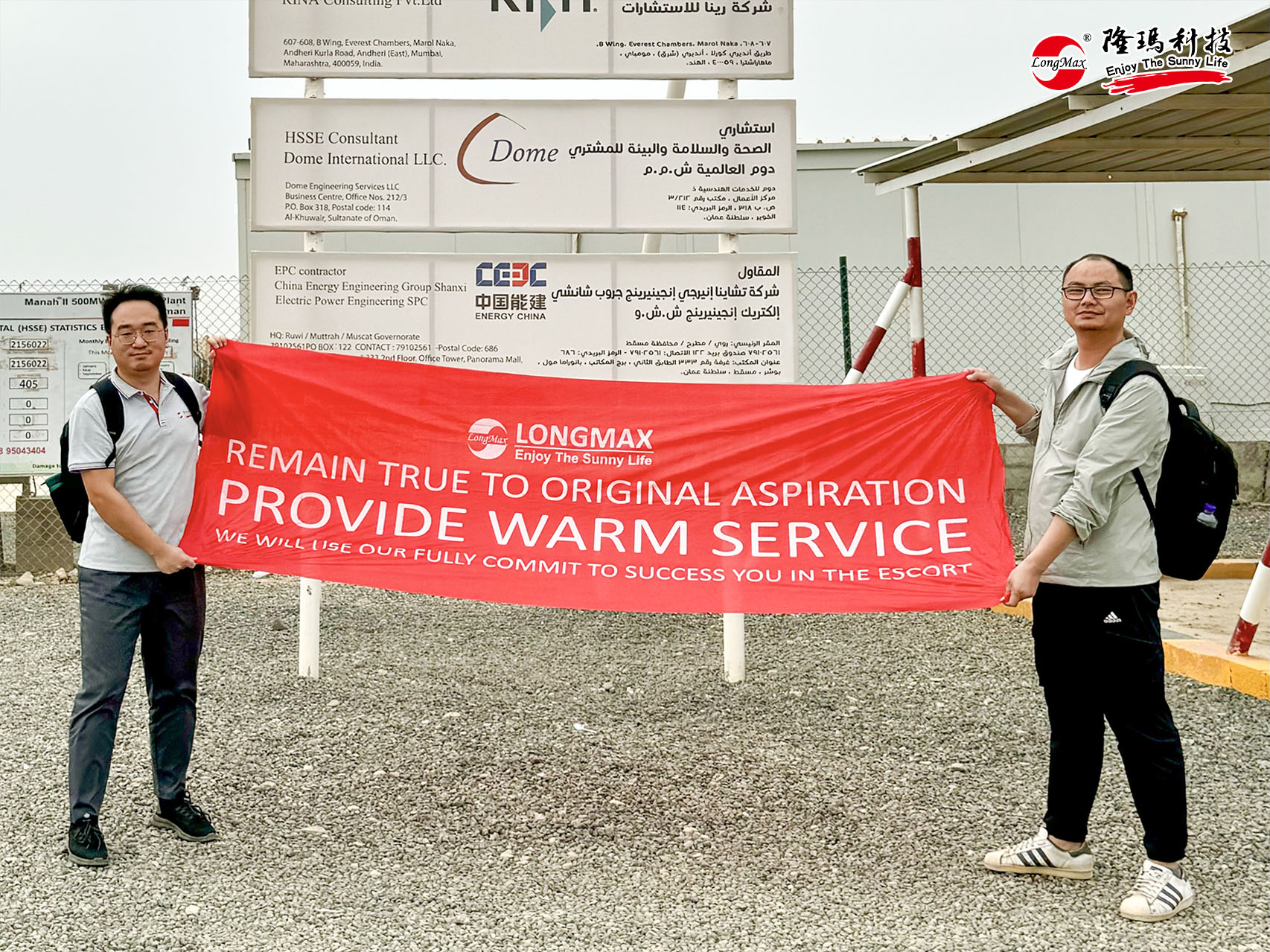 第三站,服務(wù)團(tuán)隊(duì)馬不停蹄奔赴阿曼Manah II項(xiàng)目,冒著烈日風(fēng)沙為客戶(hù)送去“服務(wù)及時(shí)雨”。